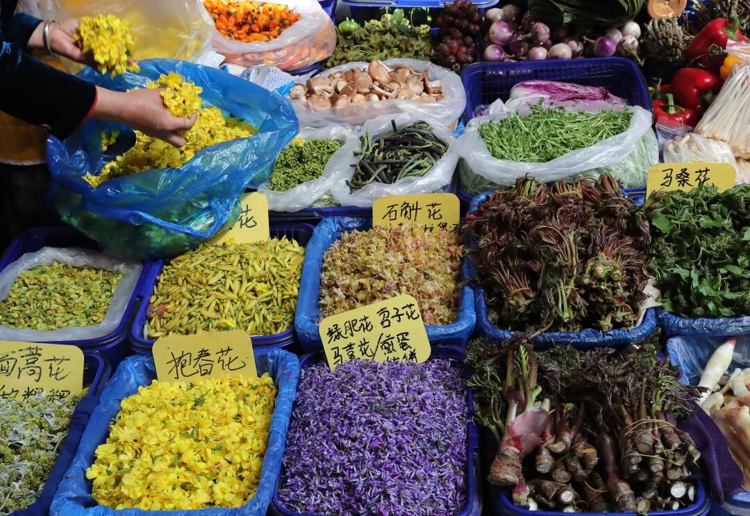 昆明篆新农贸市场内售卖的各种春花野菜 杨峥 摄