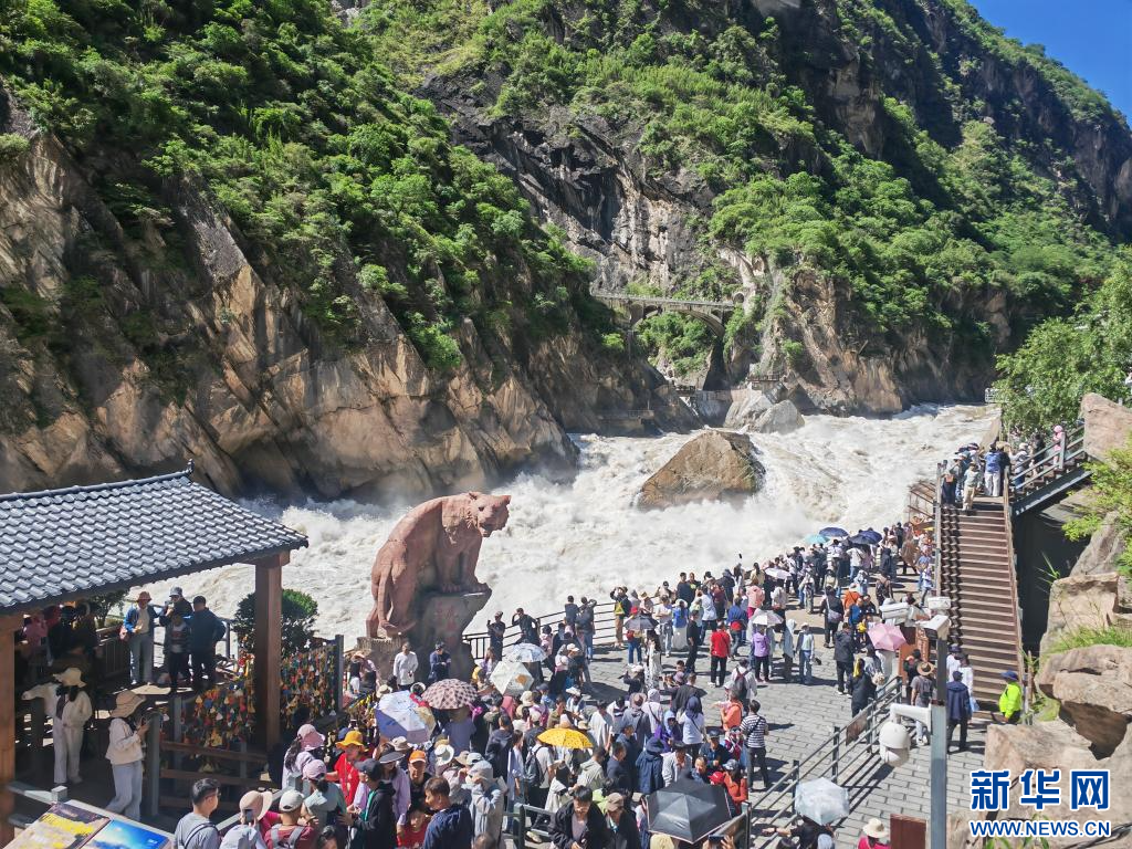 2025年6月26日,游客在虎跳峡景区游玩。新华社记者 浦超 摄