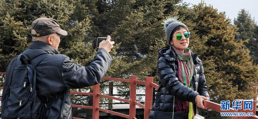 2025年3月6日,游客在普达措景区拍照留念。新华社记者 浦超 摄